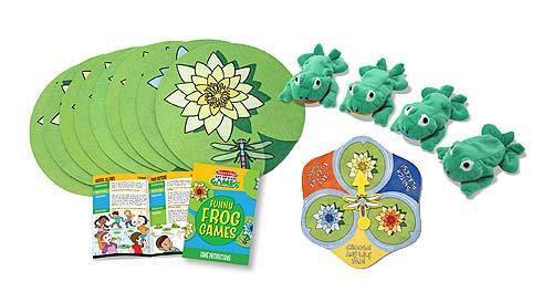 Lilypad Landing, Musical Lily Pads, and Pad Hop and Go, are three of the ten frog-themed games packed in this box. These games will improve hand-eye coordination and balance using 4 beanbag frogs, 9 colorful lilypads and a spinner. Following directions and taking turns are reinforced as children match, toss and hop in these exciting activities. Instructions include variations on many of the games to extend the fun.