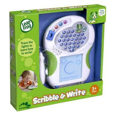 LeapFrog Scribble & Write for ages 3 - 5 years... Light the way to early writing with Scribble & Write! Children trace the lights to get practice drawing simple shapes and pictures, then graduate to learning upper- and lowercase letters with step-by-step guidance. Fun learning games help reinforce letter recognition and pencil control skills. Best of all, Scribble & Write uses a single retraceable surface for ease of use and portability. Parents can connect to the online LeapFrog Learning Path for customized learning insights and ideas to expand the learning.