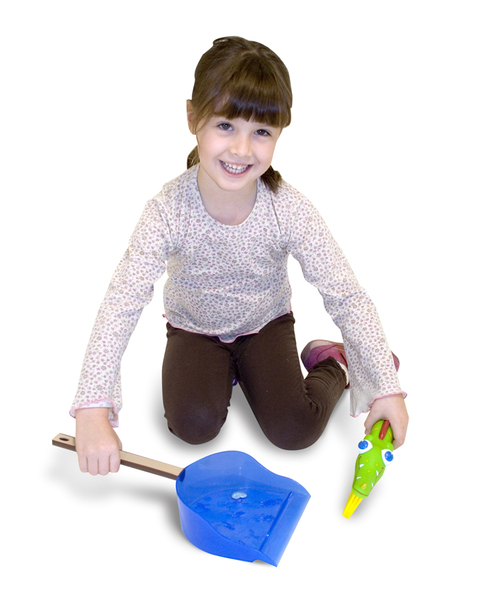 Melissa & Doug Augie Alligator Dustpan & Brush Kids will love staying clean and green with this self-storing whisk broom and dustpan. Keep this durable and colorful set handy for quick and easy clean ups. Case Pack 2