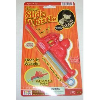 "Classic Slide Whistle. A classic toy, slide to change the sound. Adjustable pitch." Case Pack 144