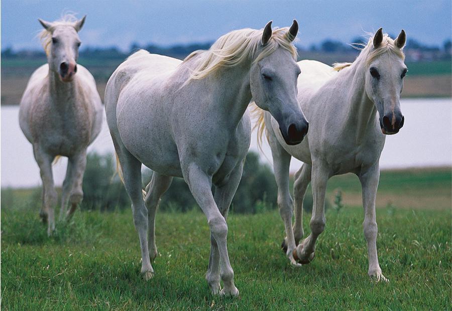Beautiful white stallions are featured on this extra thick 100 piece cardboard jigsaw puzzle. Durable and a great value, its fun to assemble. Bright, sturdy packaging will withstand many uses! Made in the USA.