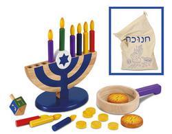 Features: Our Hanukkah Set helps teach kids about important religious traditions Menorah Dreidel Six coins Two potato latkes Spatula Pan Storage bag