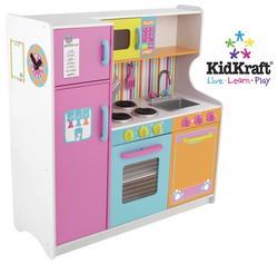 Kids will feel just like mom and dad when they cook up fun with the Deluxe Big and Bright Kitchen. This wooden kitchen is cute, colorful and built to last.