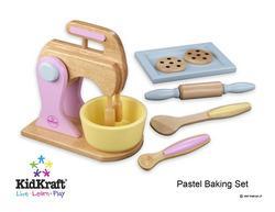 Baking fresh cookies is always a great activity for parents to share with their children. Now, with our new Pastel Baking Set and Primary Baking set, the young chefs in your life can do all the work themselves! These wooden 8-piece sets are so detailed that youll swear you smell the chocolate chips.