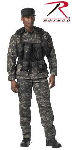 Black Tactical Assault Vest Constructed of 600 Denier ballistic polyester, with padded shoulder straps and quick release buckles. Includes two utility pockets, four magazine pouches and snaps for hooking to a pistol belt. A variety of ALICE gear may be added to the vest. One size fits most. SKU: 6580. Manufactured by Rothco.