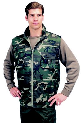 Camouflage Ranger Vest 2XL Poly/cotton construction with eight front pockets (some are hook and loop others are zippered). Includes rear game bag, zippered collar with hood and shell loops. SKU: 6550. Manufactured by Rothco.