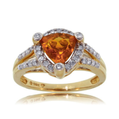 Citrine Diamond Ring 14K Gold Trillion Citrine Ladies