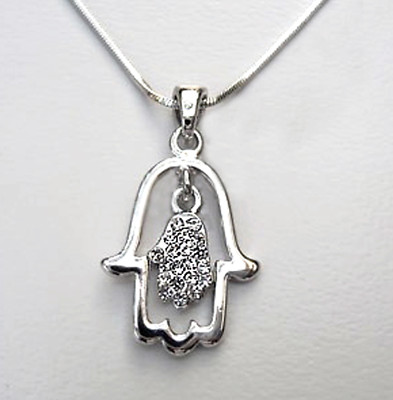 Beautiful Hamsa Amulet With White crystals Necklace.This Necklace is rhodim plated,its never blackened.