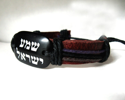 Shma Shema Israel Hebrew Jewish Leather Mens Bracelets