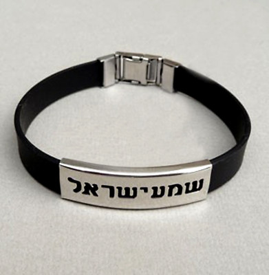 Judaica Hear Oh Israel Hebrew Pray Steel Mens Bracelet