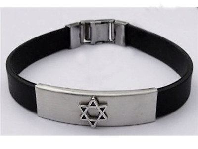 Stainless steel and Silicon Jewish Star-Magen David Mens Bracelet.