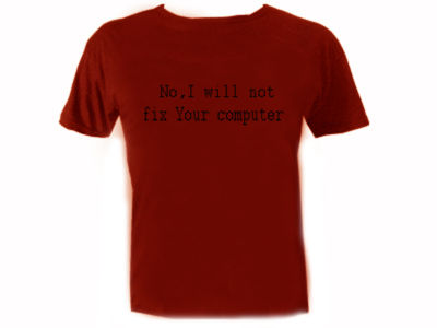 No,I will not fix Your computer-Funny Geek Silk Printed Shirt. Black Print on Red Shirt.