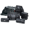 The attractive alligator grain exterior makes this a stylish set. Includes: pair of 16” x 10” x 7-1/8” saddlebags, 10"x5-3/4"x3" windshield bag, 8-1/2" x 9-1/2" x 5" tool bag, 10-1/4" x 5-1/2" x 4" sissy bar bag, 15" x 9-5/8" barrel bag, and 12-5/8" x 14" x 8" backpack.