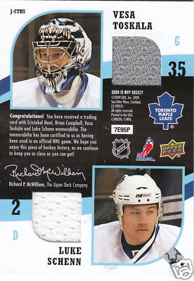 YOU ARE BIDDING ON A BRAND NEW 2009-10 UPPER DECK MVP HOCKEY 2 ON 2 JERSEY THE PLAYER LISTED IN THE TITLE ABOVE !
