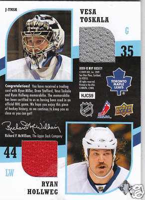 YOU ARE BIDDING ON A BRAND NEW 2009-10 UPPER DECK MVP HOCKEY 2 ON 2 JERSEY THE PLAYER LISTED IN THE TITLE ABOVE !
