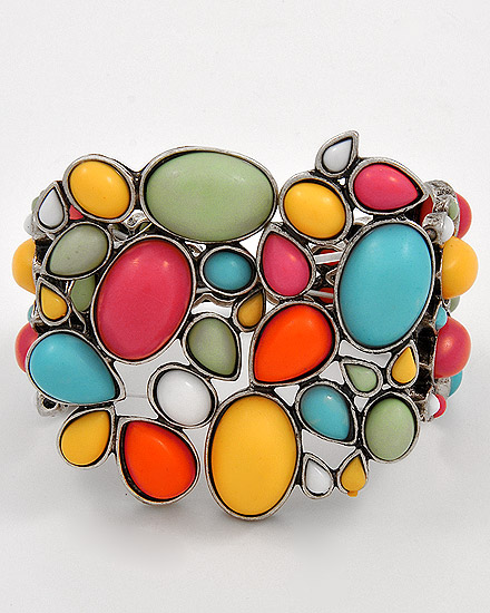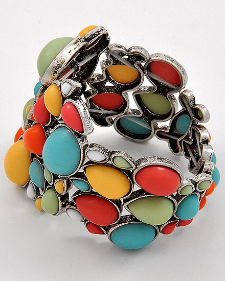 BOLD ANTIQUED SILVER MULTI COLOR BEADED CUFF BRACELET