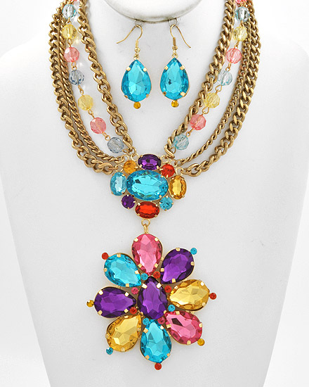 Flower / Pendant Necklace & Fish Hook Earring Set