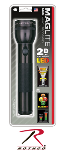 Maglight 2-D Cell LED Flashlight Constructed of high quality machined aluminum that is anodized inside and out for resistance to corrosion. Brght LED with well designed reflectors for maximum brightness and long battery life. Focus the beam by rotating the head. Water and shock resistant. SKU: 812. Manufactured by Rothco.