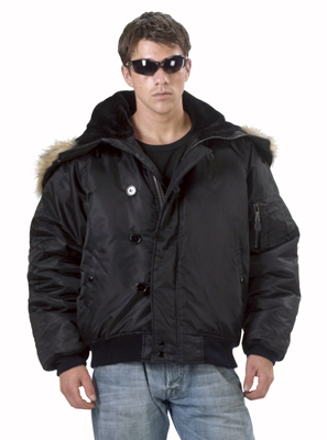 Black N-2B Flight Jacket-2XL This heavy, insulated jacket is constructed of nylon and is pile lined. Waist and cuffs are knit material. Closes with a zipper that can then be covered with a storm flap. Includes multiple pockets. SKU: 7194. Manufactured by Rothco.