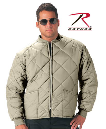 Diamond Quilted Flight Jackets 2XL Navy Constructed with a nylon outer, thermal lining and polyester fiberfill. Includes two front slash pockets. This is a good choice for inclement weather. SKU: 7161. Manufactured by Rothco.