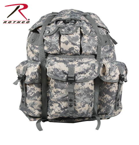 GI Type Large Army Digital Camo ALICE Pack with Frame constructed with three large vented outside pockets and waterproof lining. Also includes a heavy duty frame, accessory loops, and padded kidney and shoulder pads. SKU: 2275. Manufactured by Rothco.