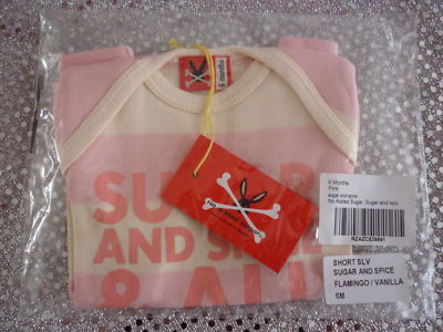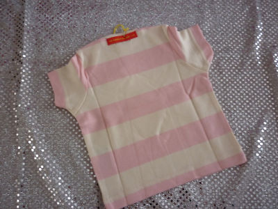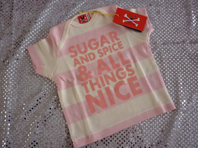 This is a very pretty baby girls top, by NO ADDED SUGAR. The top is a t-shirt style top with the words ''Sugar and Spice & All Things Nice'' printed on the front. It has stripes in the colours Flamingo Pink & Vanilla.