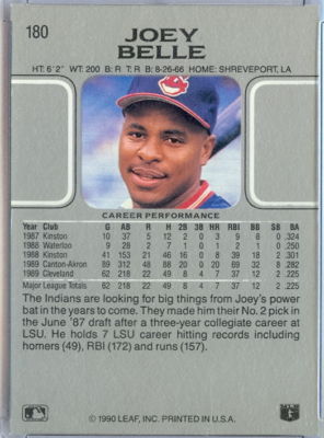 1990 Leaf # 180 Albert Belle Cleveland Indians |