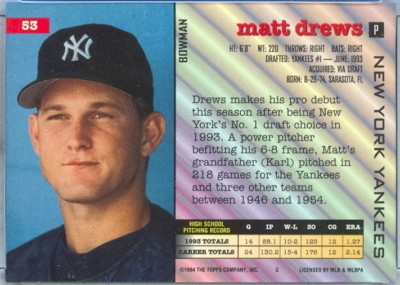 1994 Bowman # 53 Matt Drews RC Rookie Card