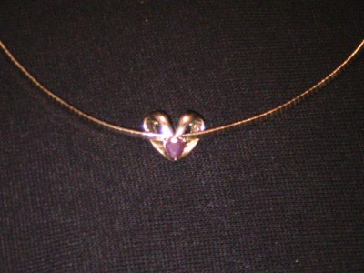 Gold over Sterling Silver Omega Chain with Genuine Ruby Heart Slide.
