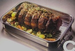 I ALSO HAVE A LARGE COVERED STAINLESS STEEL ROASTER WITH RACK LISTED. BE SURE TO LOOK AT IT ALSO.