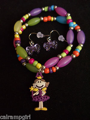 Kids Fairy Princess Charm Bracelet with Bow Earrings Purple