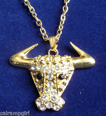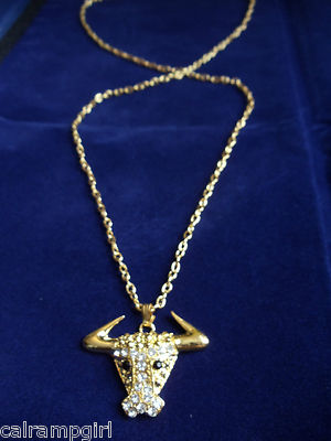 Gold Steer Bull Necklace Crystal rhinestones Cowgirl