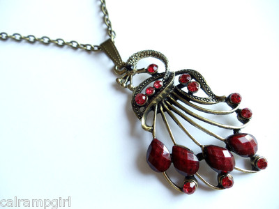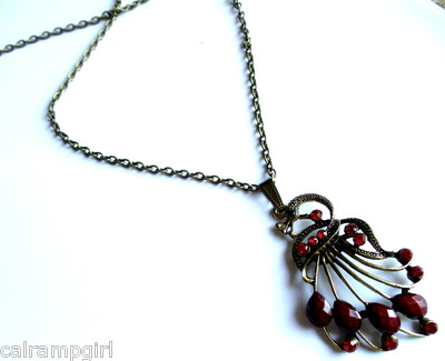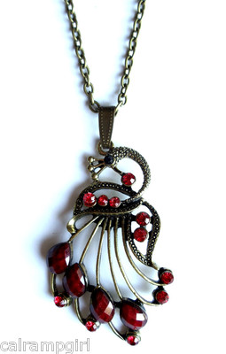 Red Peacock Necklace Antique Gold