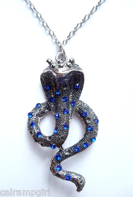 Silver Snake Necklace Blue crystal stones