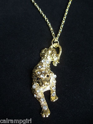 Gold Rhinestone Leopard Cheetah Necklace cats