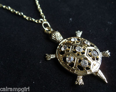 Gold Turtle Necklace clear Crystal Rhinestones