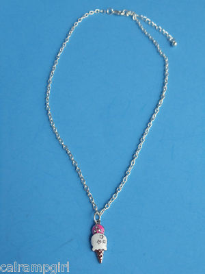 enamel and silver toned ice cream charm measures nearly 1/2 inch sprinkled with crystal stones Includes 16 inches silver chain and securely fastens together with a lobster-claw clasp. I do combine shipping so please look at my other items.