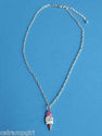 Ice Cream Cone Necklace crystal stones Pink White