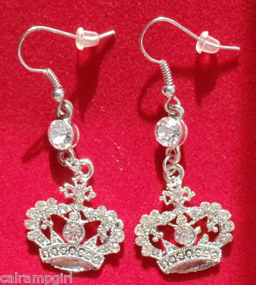 Beautiful Crystal Dangle Crown shaped earrings. hangs approx 1 1/2 " has tiny crystal stones loaded on the crown
