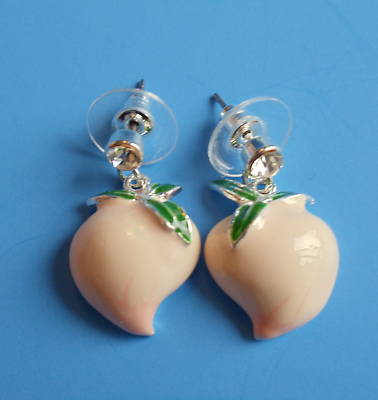 Beautiful Crystal Dangle fruit shaped earrings. hangs approx 1 1/2 " has tiny crystal stone on the top