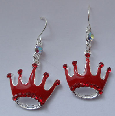 Red Princess Crown Earrings crystal stones