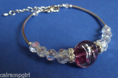 Purple Clear oval Glass WIRE CUFF BRACELET