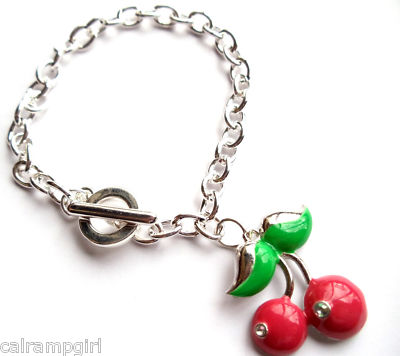 Red Cherries Charm Bracelet Fruit Summer Fashion