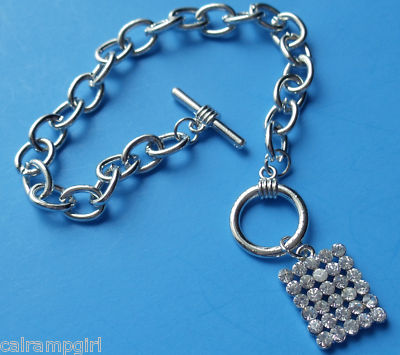 silver tone 7 1/2 inch chain toggle clasp. loaded with crystal rhinestones 1" long x 1/2" I do combine shipping so please look at my other items.