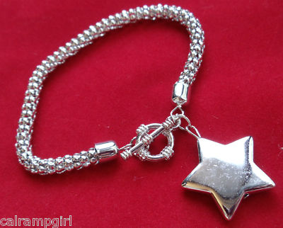 7 1/2 inch mesh with toggle clasp. silver tone charm measures approx 1 " x 1 " I do combine shipping so please look at my other items.