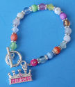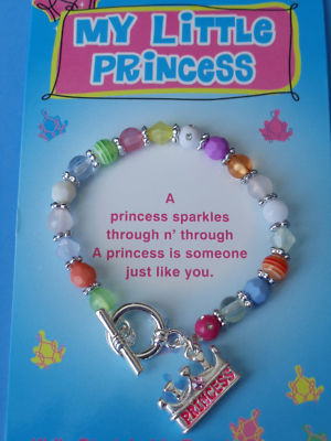 "My Little Princess" bracelet with colorful beads & silver colored rondelles. The bracelet has a double-sided silvery crown Charm with a pink rhinestone on each side. The bracelet was made to fit children but it is stretchy to fit all kids!! It has a toggle clasp and a beautiful sentiment that reads: "A princess sparkles through n' through A princess is someone just like you. Also available in sweetheart and my little Angel. I do combine shipping so please look at my other items