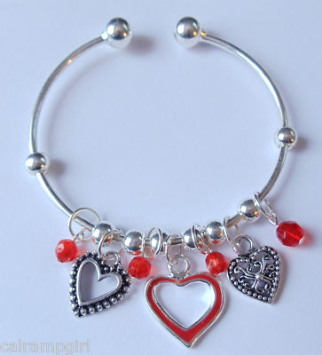 Red silver Hearts Valentines Day Bangle Charm Bracelet