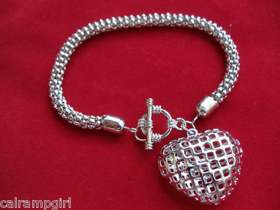 7 1/2 inch mesh with toggle clasp. silver tone charm measures approx 1 " x 1 " I do combine shipping so please look at my other items.