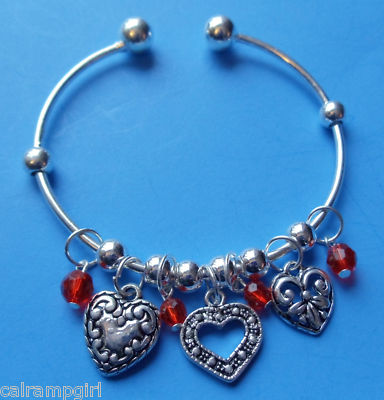 Silver Hearts Valentines Day Bangle Charm Bracelet