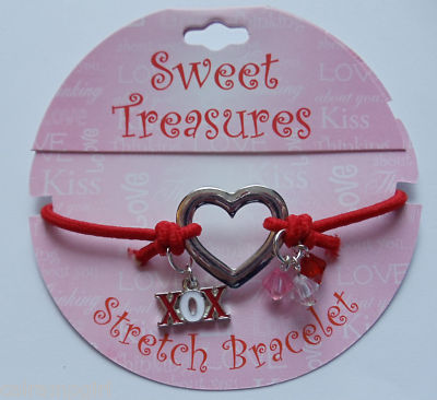 Heart silver toned on stretch material to fit most wrists. small heart charm individually carded and packaged. other styles and colors available in store Please look at my other items I do combine shipping